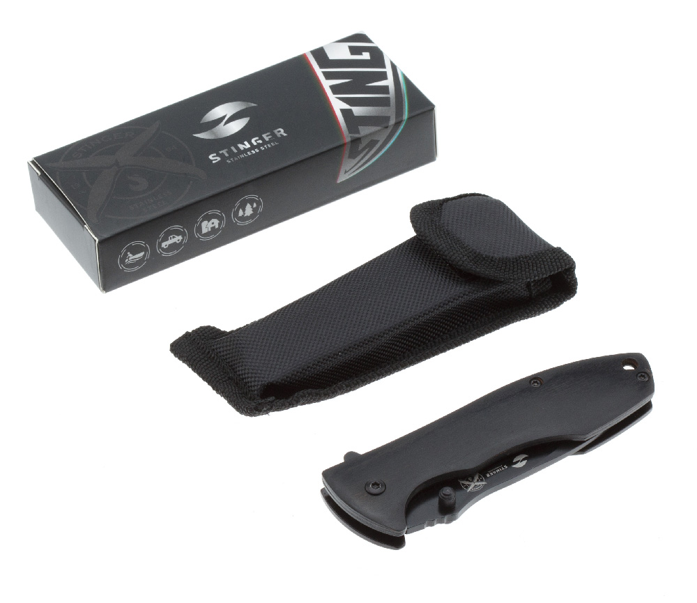 Нож складной Stinger, 80 мм, (чёрный), материал рукояти: сталь/дерево пакка (чёрный)