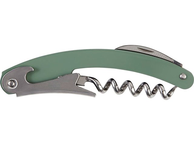 Складной нож из нержавеющей стали с цветным корпусом с обрезчиком для фольги и открывалкой для бутылок. нержавеющая сталь. Гравировка (оптоволоконный лазер) (Без чернения) на данный товар осуществляется бесплатно. Оплачивается только настройка оборудования в размере 1100 рублей на весь тираж.