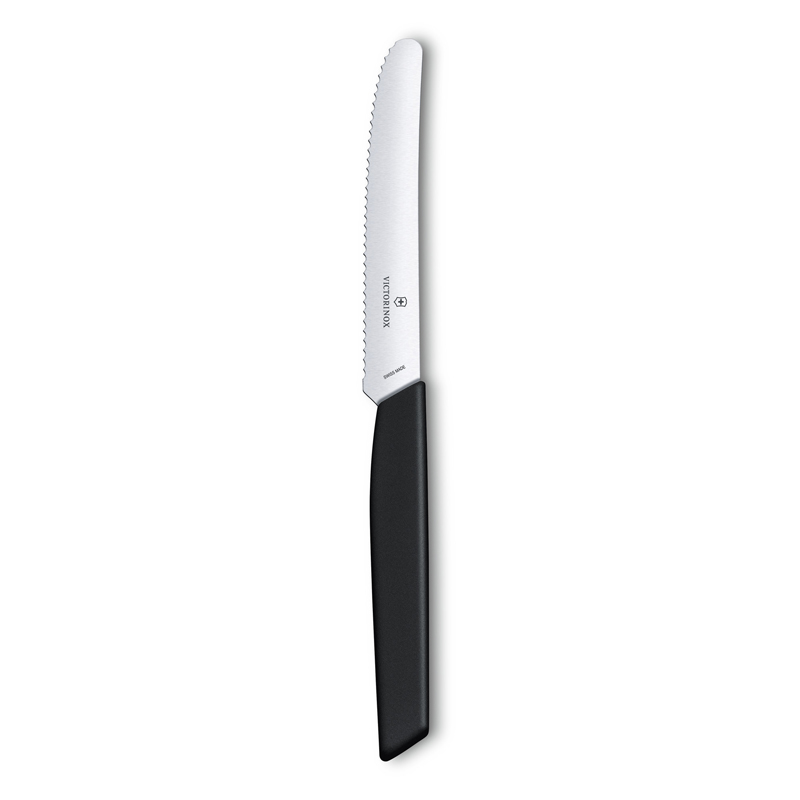 Нож столовый VICTORINOX Swiss Modern, волнистое лезвие 11 см с закруглённым кончиком, чёрный
