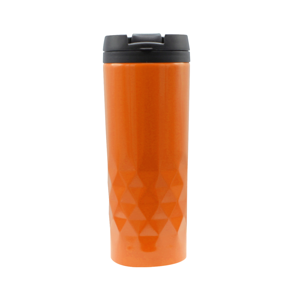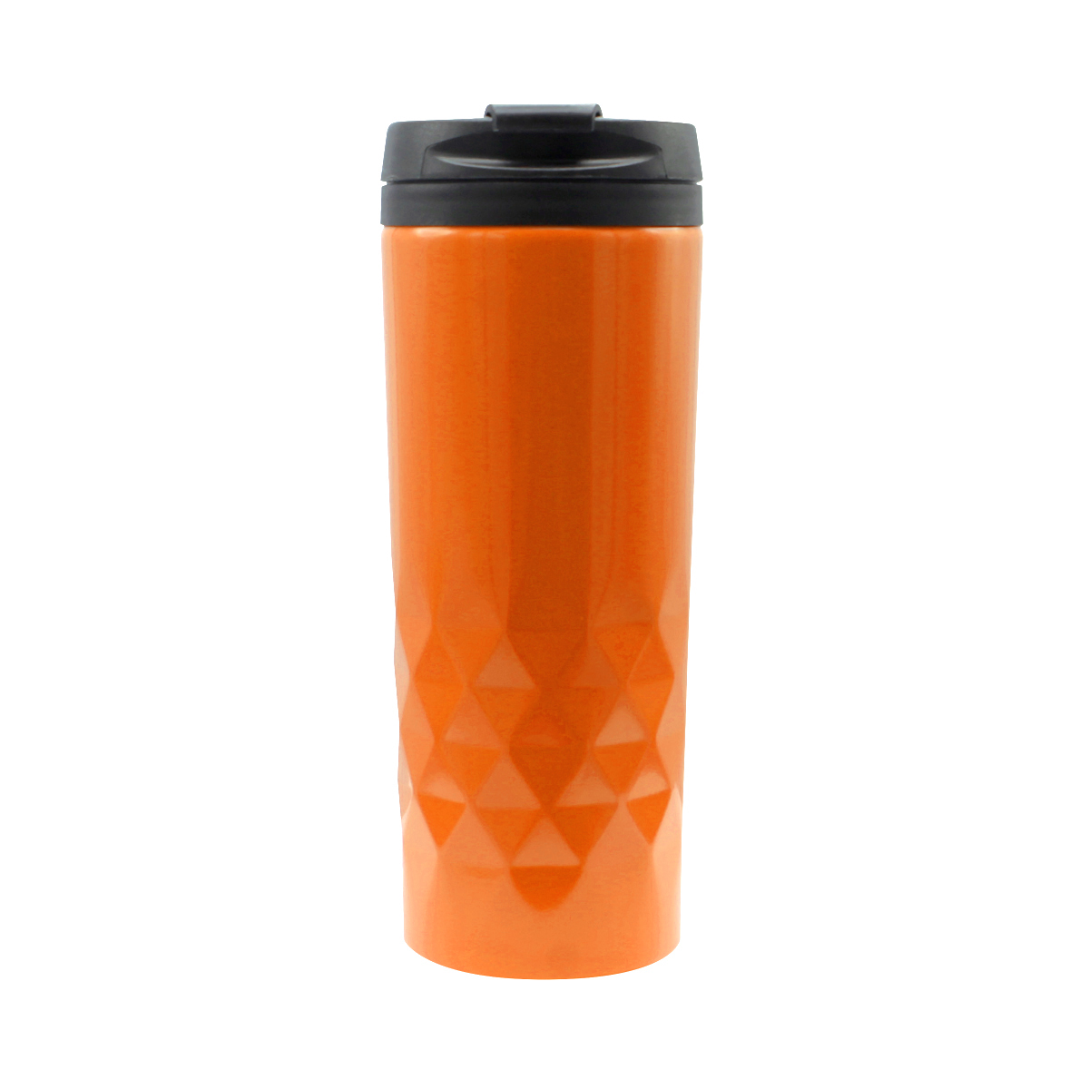 Стильная термокружка изготовлена из нержавеющей стали и дополнена оригинальными геометрическими деталями. Внутренняя колба сделана из пластика. Удобная крышка не даст расплескаться напитку. Объем термокружки – 500 мл.