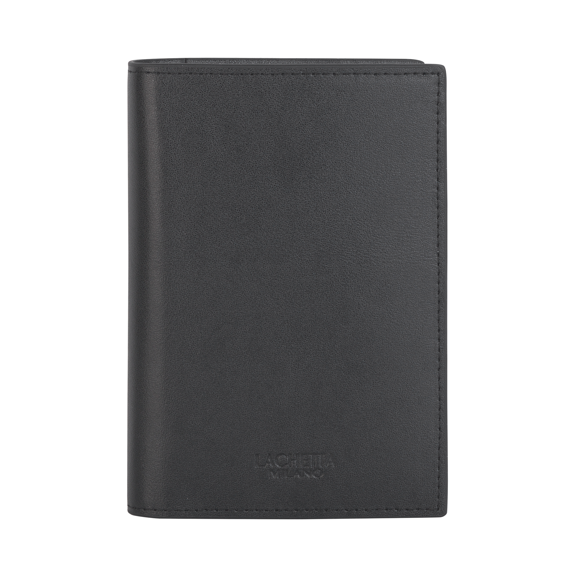 Обложка для паспорта изготовлена из натуральной кожи черного цвета.