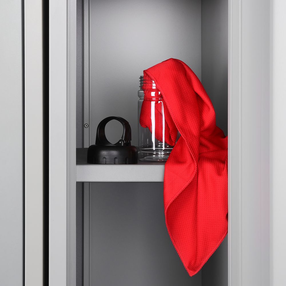 Для получения охлаждающего эффекта намочите полотенце, отожмите излишки воды и встряхните. При хранении в бутылке полотенеце сохранит охлаждающий эффект в течении нескольких часов.