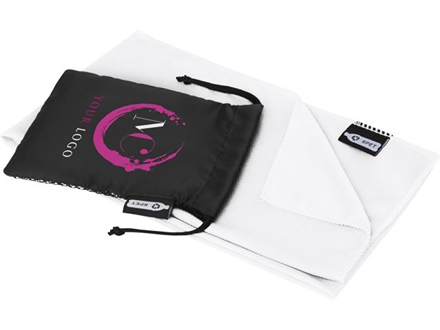 Быстро впитывающее, быстро высыхающее и моющееся охлаждающее полотенце из переработанного ПЭТ. Поставляется в маленьком сетчатом мешочке из переработанного ПЭТ с застежкой для удобной переноски. Термотрансфер (1 цвет (цветные изделия)) на данный товар осуществляется бесплатно. Оплачивается только настройка оборудования в размере 10000 рублей на весь тираж.