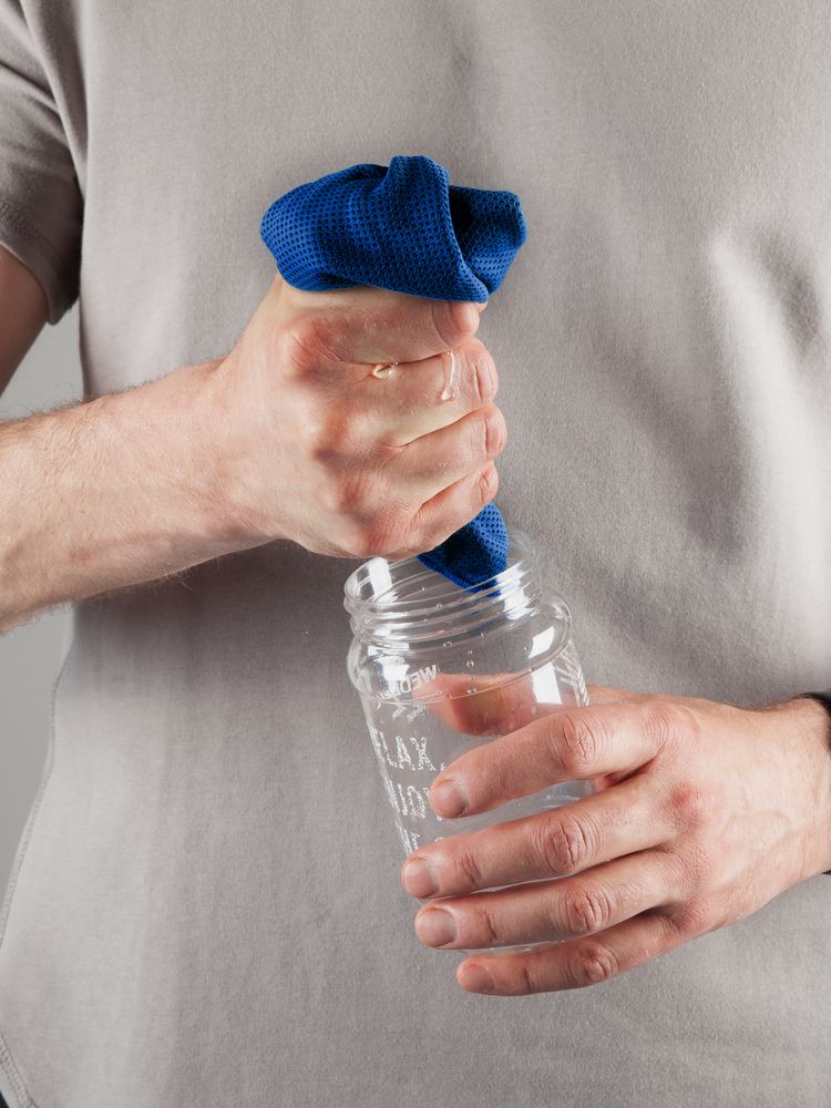 Для получения охлаждающего эффекта намочите полотенце, отожмите излишки воды и встряхните — генератор прохлады готов! Охлаждающий эффект достигается за счет использования в ткани гидрофобных волокон — они ускоренно испаряют влагу, тем самым обеспечивая интенсивное снижение температуры.
