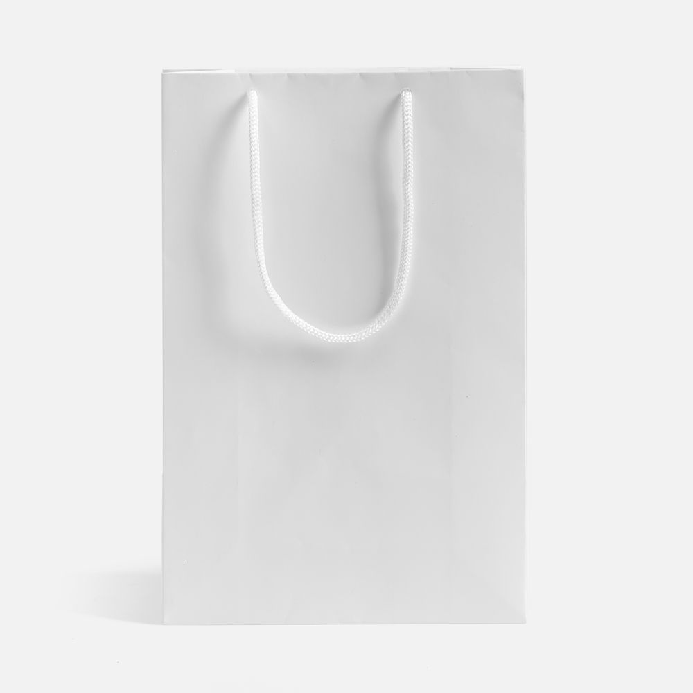 Пакет из плотной мелованной бумаги с матовой ламинацией.Выдерживает вес до 2 кг.