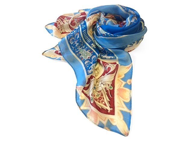 Прочитав сказку юного дарования, сам великий Александр Сергеевич Пушкин сказал: Этот род сочинений я могу теперь оставить - и Петр Ершов был принят в круг петербургских писателей.В этом году сказке из золотого фонда русской литературы, переведенной на все языки мира, исполняется 185 лет. Ее яркие краски мы перенесли на шелк и создали платок Конек-Горбунок. Благодаря тонкой работе дизайнера, со страниц книги, как живые, сошли герои любимой с детства истории: Иван, прекрасная Царь-девица и волшебный Конек-Горбунок. А в роскошных орнаментах сплелись легендарное перо Жар-птицы, Красное Солнышко и Месяц…