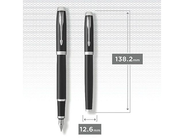 Лаковое покрытие корпуса глубокого черного цвета превосходно сочетается с хромированными декоративными элементами. Ручка упакована в подарочную коробку Parker.