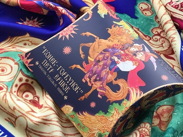 Прочитав сказку юного дарования, сам великий Александр Сергеевич Пушкин сказал: Этот род сочинений я могу теперь оставить - и Петр Ершов был принят в круг петербургских писателей.В этом году сказке из золотого фонда русской литературы, переведенной на все языки мира, исполняется 185 лет. Ее яркие краски мы перенесли на шелк и создали платок Конек-Горбунок. Благодаря тонкой работе дизайнера, со страниц книги, как живые, сошли герои любимой с детства истории: Иван, прекрасная Царь-девица и волшебный Конек-Горбунок. А в роскошных орнаментах сплелись легендарное перо Жар-птицы, Красное Солнышко и Месяц…