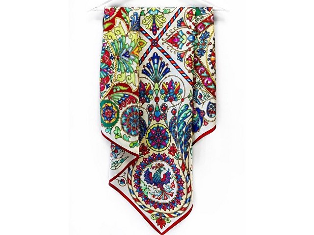 Платок Русская эмаль — это атрибут нежных и утончённых женщин, покоряющих мужские сердца. Его принт с мягкими обтекаемыми линиями и многообразием оттенков навеян мотивами старинного русского промысла — росписи металла горячей эмалью, которой еще в XI-XII веках украшали посуду, ювелирные изделия, книги и табакерки. Яркие синие, красные, зеленые и голубые цвета гармонично сочетались с драгоценными камнями и металлами в творениях Карла Фаберже.