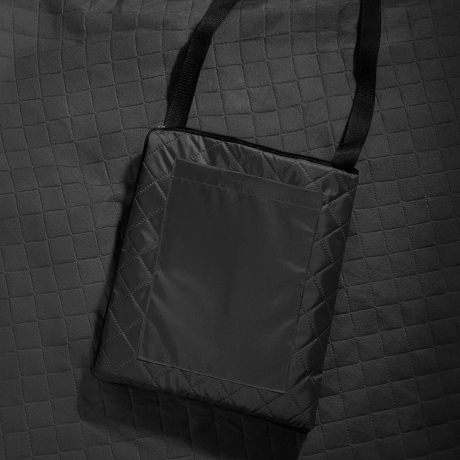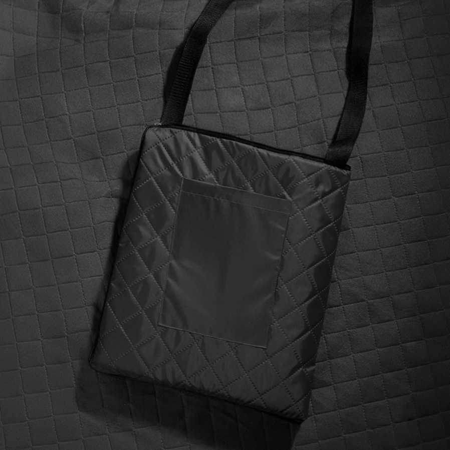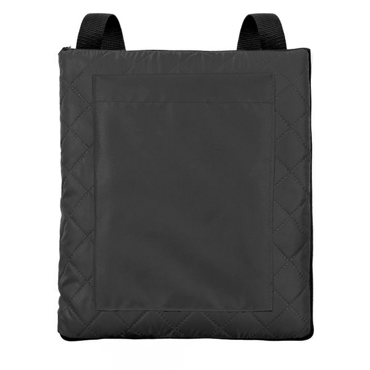 Двухсторонний плед с водоотталкивающим покрытием с одной стороны и мягким флисом с другой. Складывается в сумку на плечо и фиксируется с помощью молнии.Есть наружный карман.