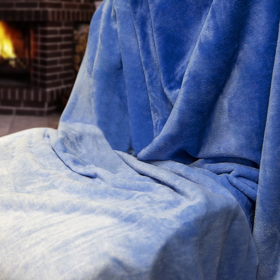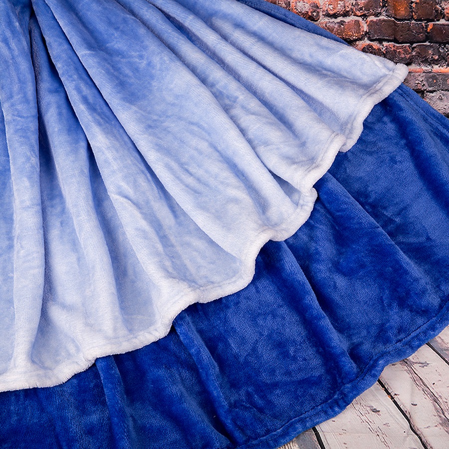 Плотность пледа 280 гр м, размер 130*150 см. Плед окрашен градиентом - плавный переход от светло-синего к темно-синему оттенку.