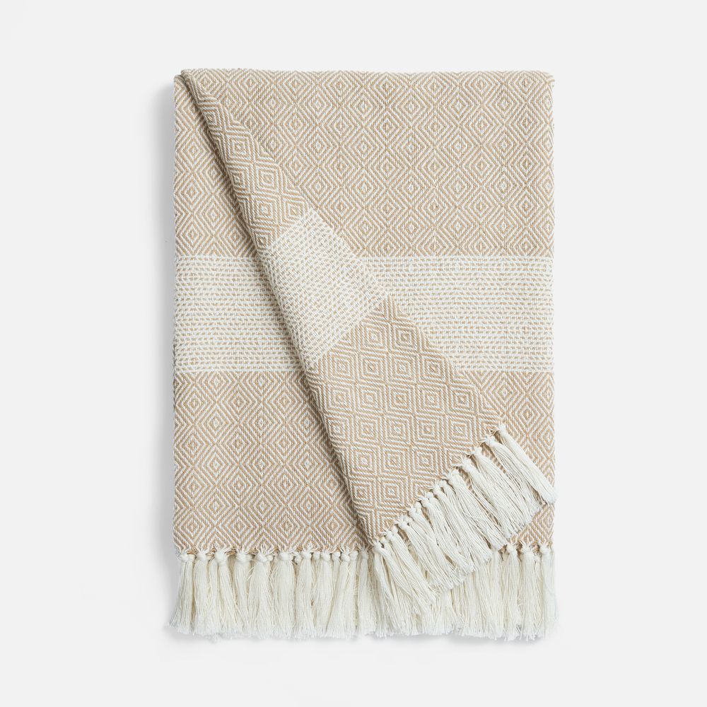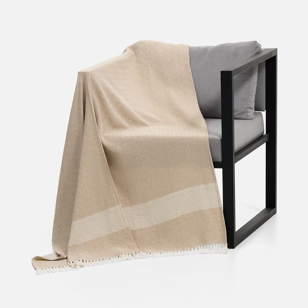 Приглушенные оттенки и динамичный геометрический рисунок на пледе Ladakh настраивают на созерцание, а его уютная мягкость — на приятный отдых в уюте и тепле.