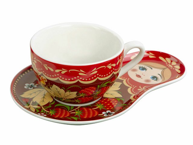 В наборе вы найдете необычную чайно-кофейную пару с подставкой в виде русской Матрешки, которая является одним из главных символов России и чай Глинтвейн фруктовый, 90 г.