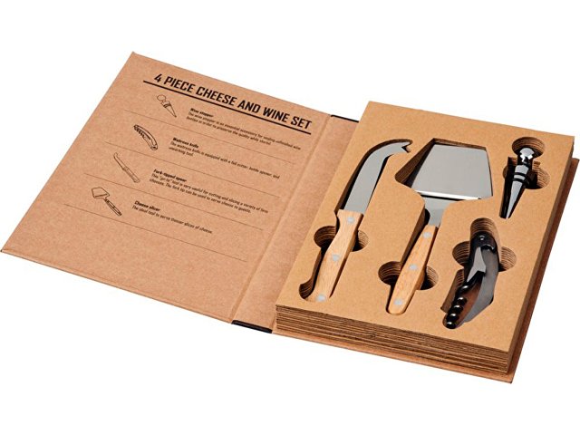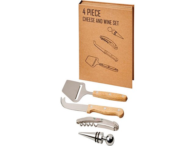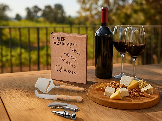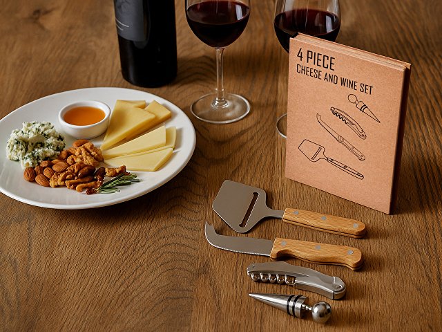 Премиальный набор для сыра и вина Reze— идеальный подарок для гурманов и ценителей изысканных вечеров. В стильной упаковке-книжке вы найдёте 4 инструмента: нож и слайсер для сыра, штопор и винную пробку. Комбинация нержавеющей стали и деревянных ручек придаёт элегантности и долговечности. Стильно, практично, со вкусом! Гравировка (оптоволоконный лазер) (Без чернения) на данный товар осуществляется бесплатно. Оплачивается только настройка оборудования в размере 1100 рублей на весь тираж.