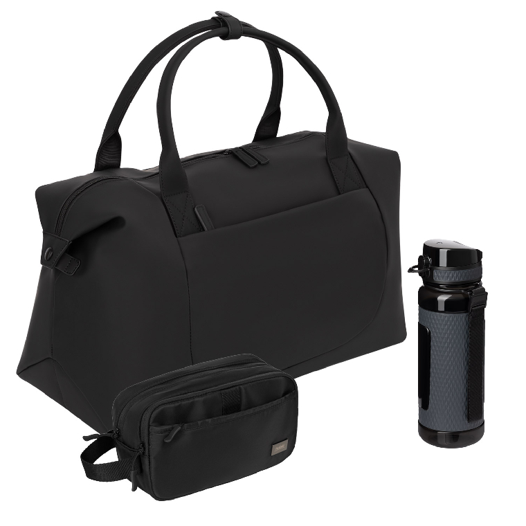 Подарочный набор Madrid Premium Sport, черный (бутылка, дорожная косметичка, дорожная сумка)