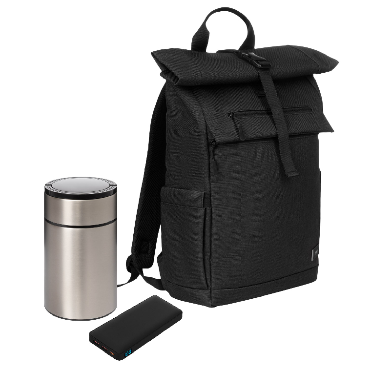 Подарочный набор Monte, черный (термос, ЗУ, рюкзак)