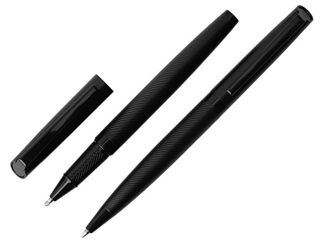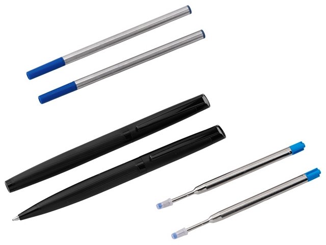 В набор входят шариковая ручка и роллер. Швейцарский пишущий узел Premec и немецкие чернила Dokumental обеспечивают мягкое и плавное письмо. Корпус каждой ручки имеет анодированный слой, благодаря которому гравировка получается с зеркальным эффектом.В набор входит также пенал для двух ручек, который также можно брендировать.