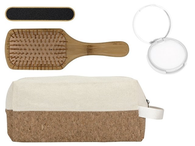 Материал: | расческа, пилка для ногтей - бамбук, бальзам для губ -пластик, несессер - хлопок, пробка, ручка - полиэстер |