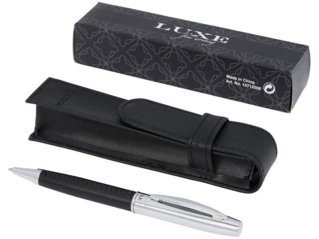 Подарочный набор Scherzo. Эксклюзивная шариковая ручка с обтянутым кожаным материалом корпусом и чехлом из искусственной кожи, упакованная в подарочную коробку LUXE. Металл и искусственная кожа. Гравировка (оптоволоконный лазер) (Без чернения) на данный товар осуществляется бесплатно. Оплачивается только настройка оборудования в размере 1100 рублей на весь тираж.