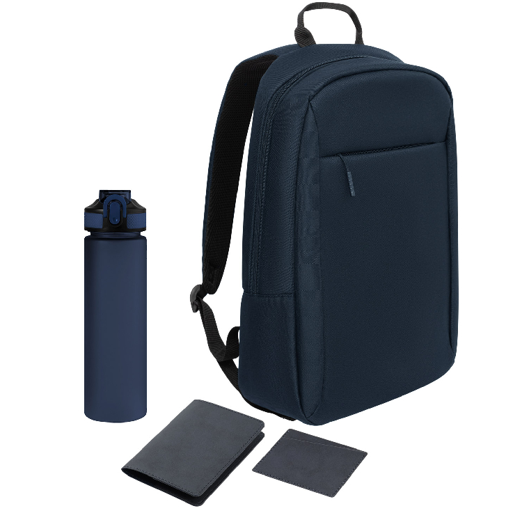 Подарочный набор Sirius, синий (обложка на паспорт, картхолдер, бутылка, рюкзак)