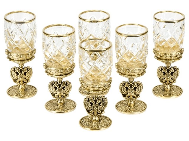 В набор входит шесть стопок по 30 мл. Хрусталь, литьё. УФ-печать (УФ-печать цветные изделия) на данный товар осуществляется бесплатно. Оплачивается только настройка оборудования в размере 2000 рублей на весь тираж.