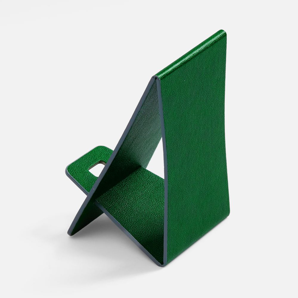 Складная подставка для телефона с вырубкой под шнур зарядного устройства. Выполнена из материала Petrus.
