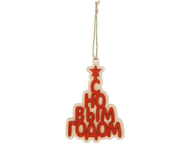 Оригинальное елочное украшение в виде поздравления С новым годом!. Подвеска выполнена из березовой фанеры и тонирована в красный цвет.