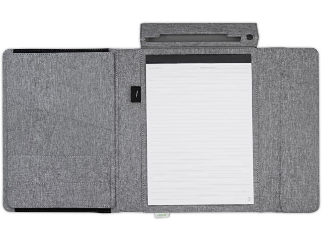 Обложка выполнена из переработанного пластика (RPET). Внутри папки 20 листов FSC бумаги плотностью 80 г/м2, изготовленной с соблюдением экологических норм.