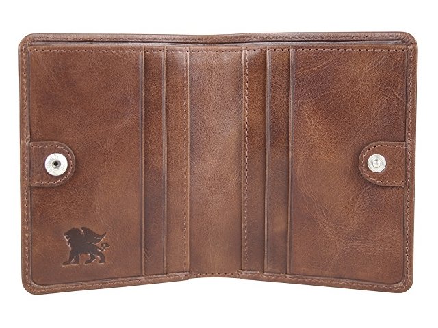 Портмоне изготовлено вручную из натуральной воловьей кожи, обеспечивает удобное и функциональное хранение купюр и кредитных карт.