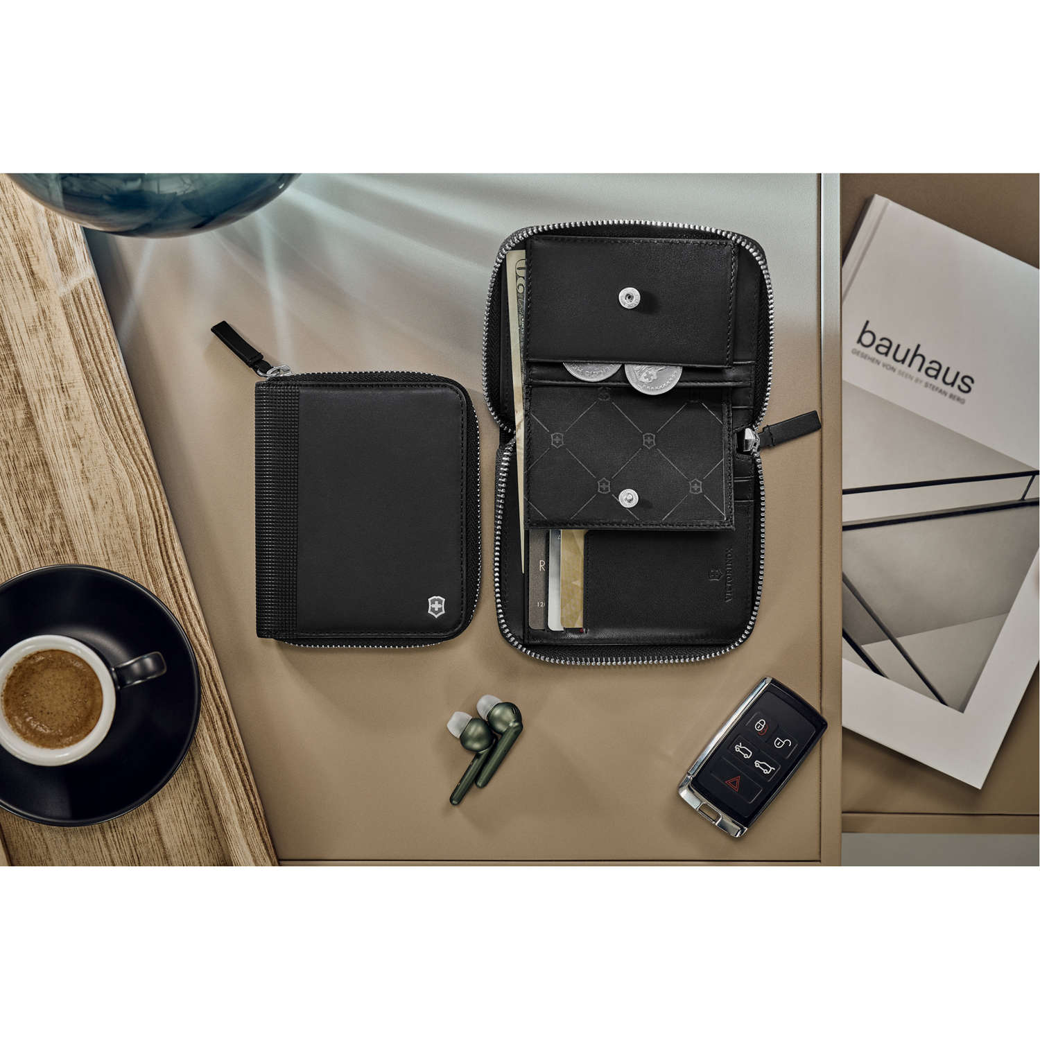 Портмоне VICTORINOX Altius Alox на молнии, чёрное, натуральная кожа, 12x2x10 см