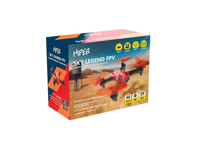 Квадрокоптер HIPER SKY LEGEND FPV подойдет новичкам для обучения и опытным пилотам для развлечения, имеет встроенную FPV видеокамеру 480P. Испытайте свободу полёта от первого лица, установив приложение для IOS и Android. Прямо с планшета или смартфона вы сможете управлять полётом и контролировать фото-видео съёмку. Либо просто закрепите свой смартфон в качестве экрана на пульте ДУ и наблюдайте трансляцию с камеры по WiFi.