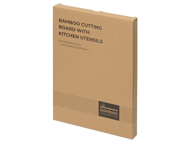 Бамбуковая доска с кухонными принадлежностями - отличный подарок для любителя готовки и кулинарии.