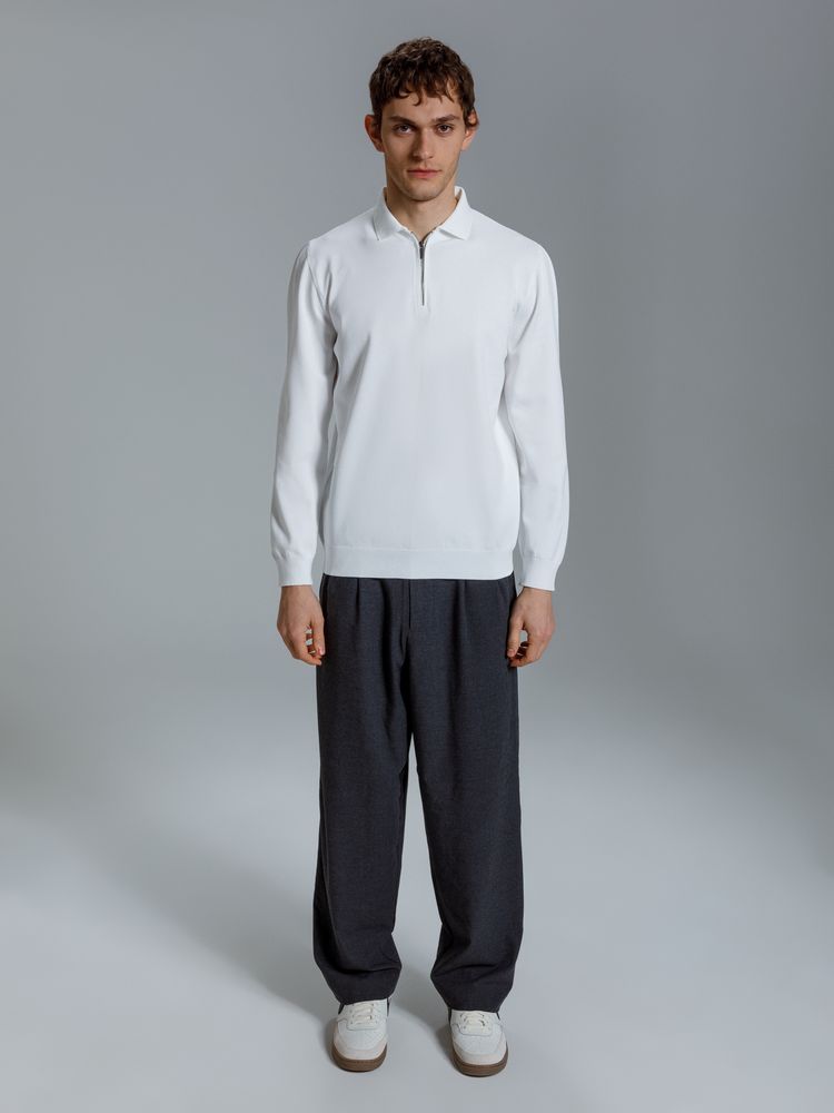 Модная рубашка поло из гладкого полотна идеально садится по фигуре. Металлическая молния на планке делает образ современным и лаконичным.