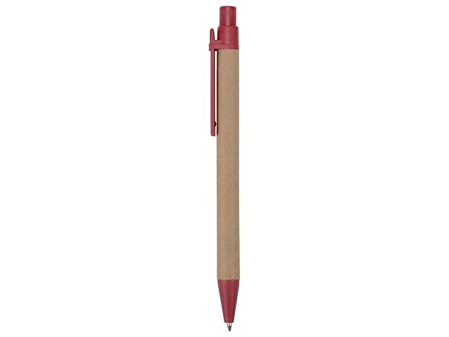 Шариковая ручка с нажимным механизмом. Удобный корпус сделан из переработанного картона. Клип, кнопка и носик ручки на 50% состоят из пшеничной соломы, на 50% — из переработанного пластика. Настоящая находка для тех, кто предпочитает использовать изделия из биоразлагаемых материалов и заботится о сохранности окружающей среды.