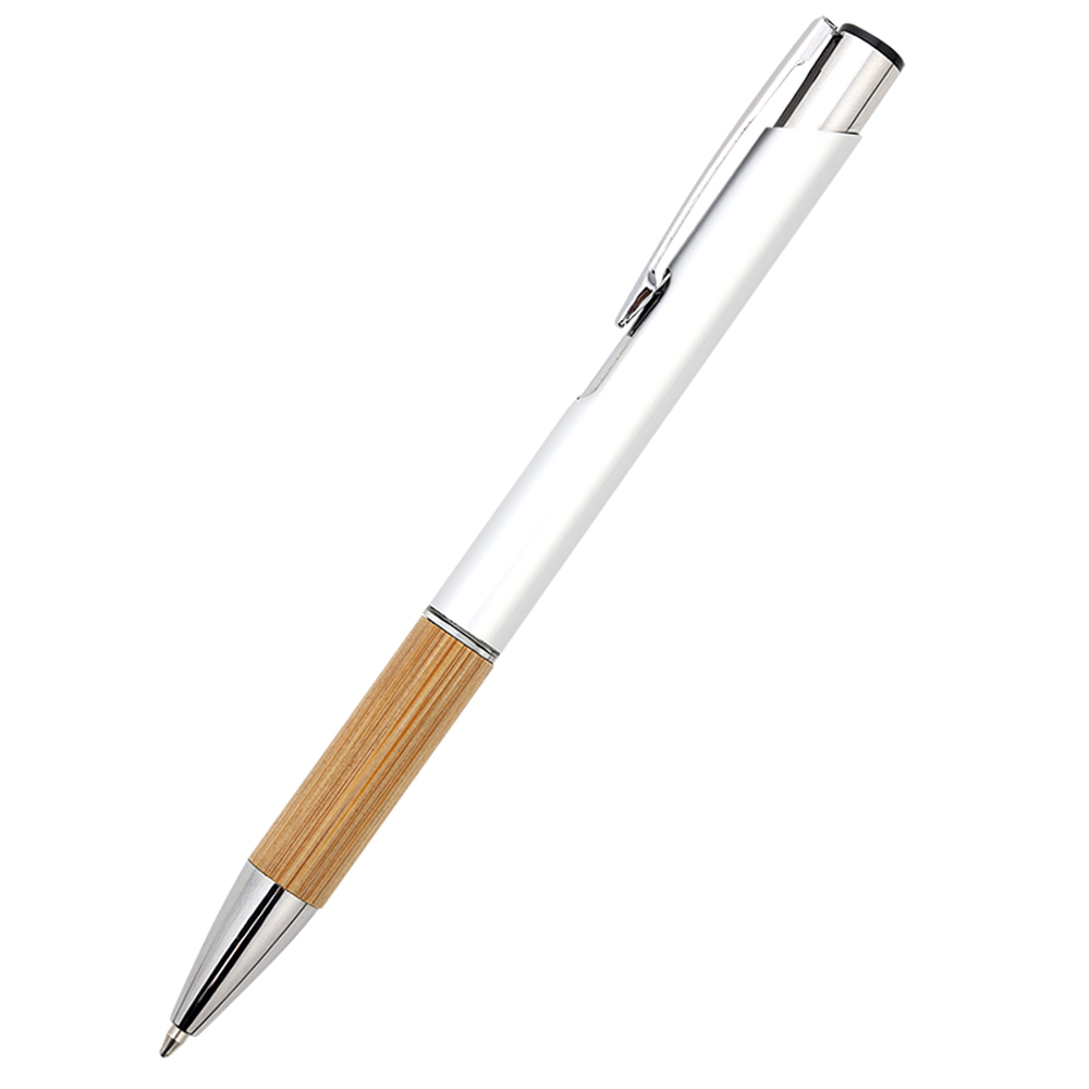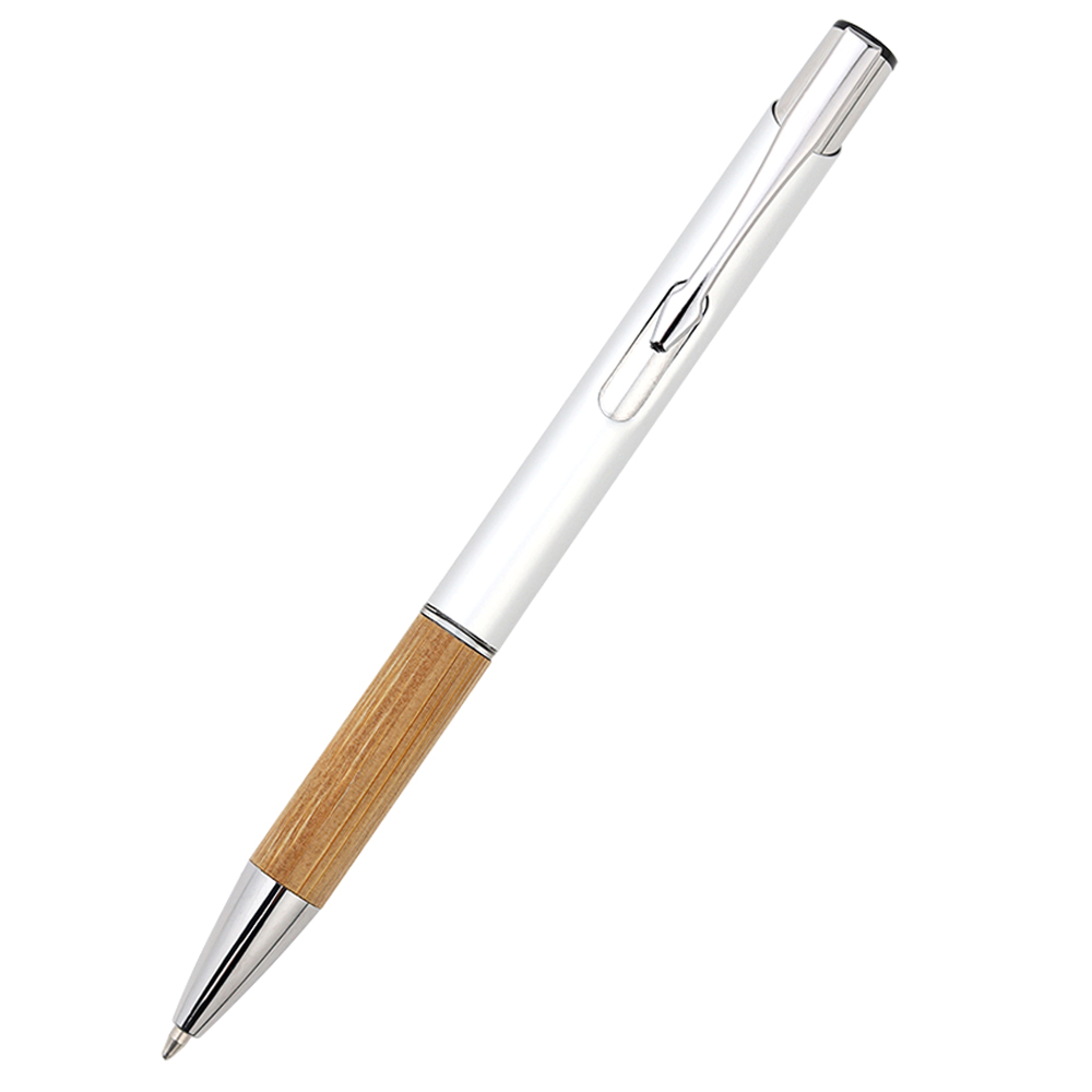 Металлическая шариковая ручка представительского класса. Глянцевые детали отделки с бамбуковой вставкой. Толщина пишущего узла 1 мм, длина письма рассчитана на 700 м.