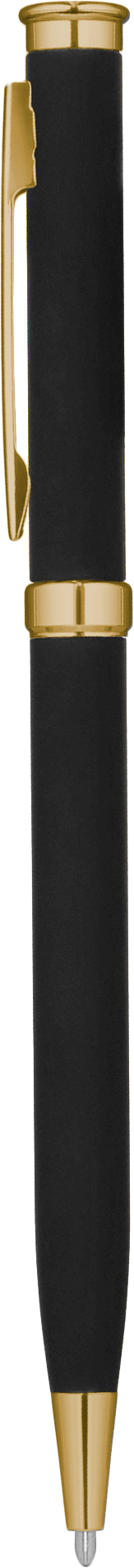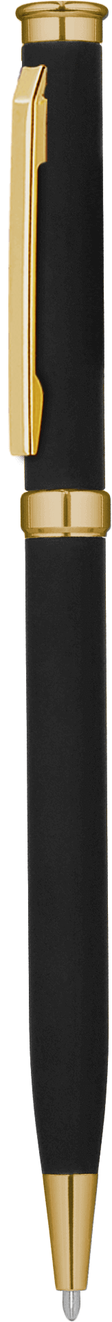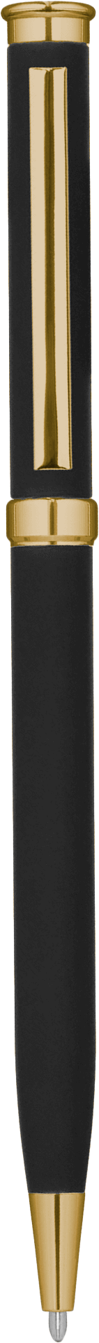 Корпус с софт-тач покрытием. Наконечник, кольцо и верхняя часть пластиковые, золотистые.