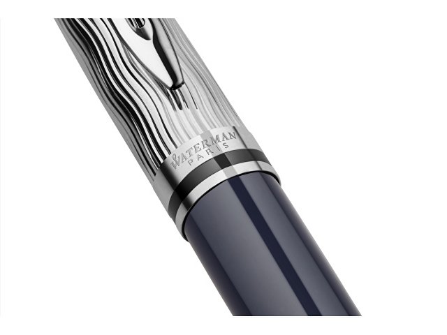 - Эмблематический темно-синий лак Waterman на корпусе, волновой рисунок signatuer, вырезанный на крышке, крышка и отделка с покрытием из палладия для высококачественной отделки