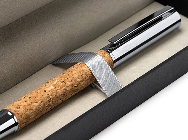 Ручка роллер из натуральной пробки и металла. Поставляется в элегантном футляре из пробки с мягкой внутренней отделкой. Гравировка (оптоволоконный лазер) (Без чернения) на данный товар осуществляется бесплатно. Оплачивается только настройка оборудования в размере 1100 рублей на весь тираж.