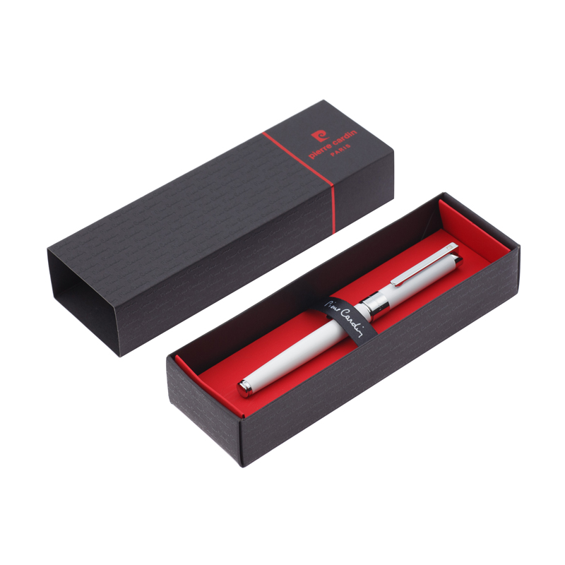 • Металлический роллерный стержень с логотипом Pierre Cardin на корпусе с чернилами синего цвета;