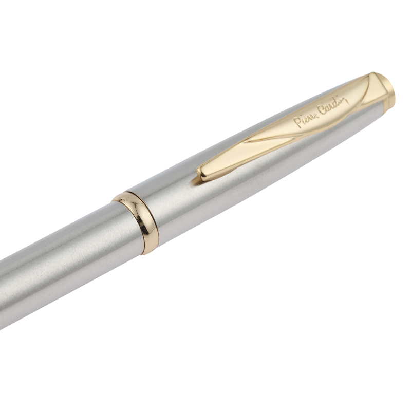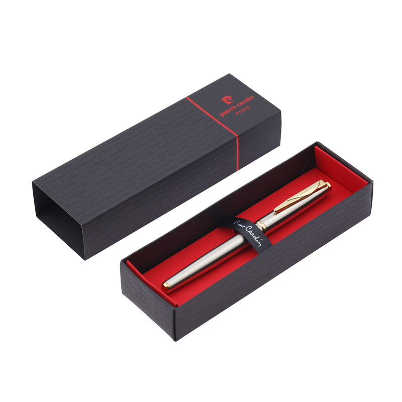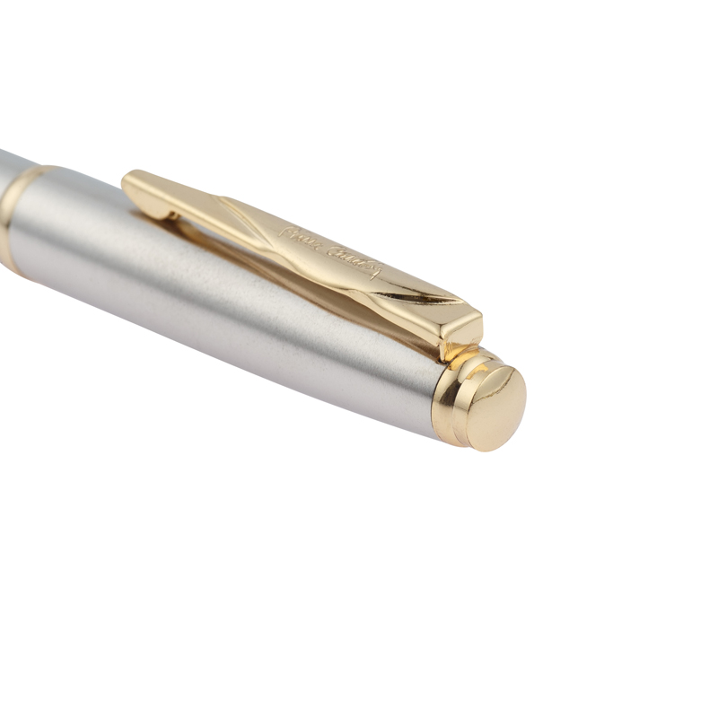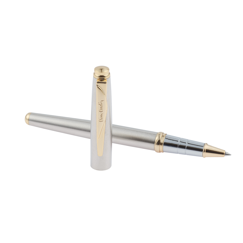 • Металлический роллерный стержень с логотипом Pierre Cardin на корпусе с чернилами синего цвета;