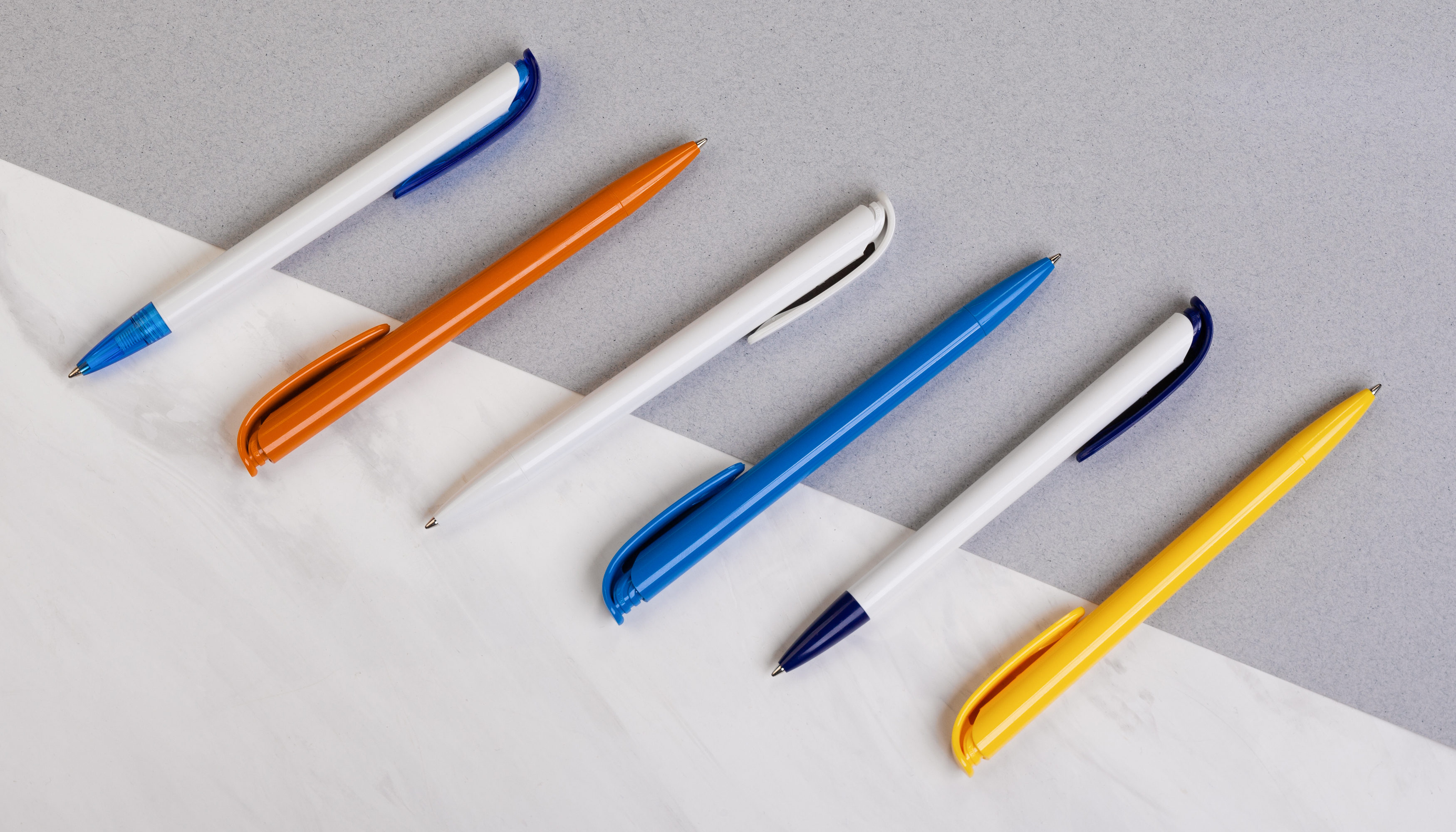 Классическая модель с нажимным механизмом, представлена в основных корпоративных цветах. Оптимальна для проведения массовых бюджетных промо-акций.
