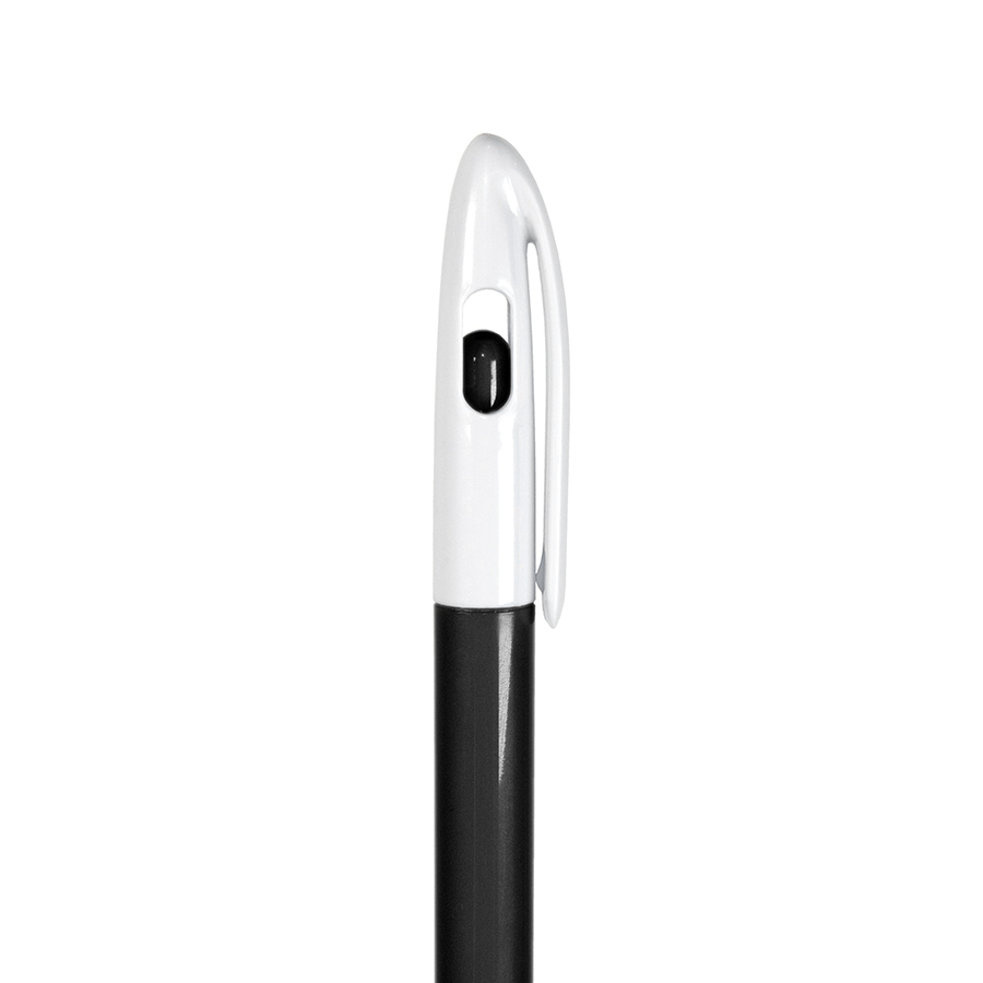 Ручка обтекаемой формы с поворотным механизмом и оригинальной деталью: когда стержень в нерабочем положении, цветная внутренняя кнопка полностью закрывает окошко в верхней части ручки, а когда стержень выдвинут - окошко наполовину открыто. Классическое сочетание глянцевого белого и цветного пластика создают отличный фон для логотипа или рекламного сообщения. • Цвет, близкий к Pantone Black. • Корпус и клип из ABS пластика. • Поворотный механизм подачи стержня. • Пулевидный пишущий узел 1.0 мм. • Длина линии письма 600-800 м. • Цвет чернил синий. • Угол поворота корпуса 120°. • Сменный стержень X-20, длина 121 мм. Чтобы заменить стержень, нужно с небольшим усилием разъединить верхнюю и нижнюю части ручки, а после замены - соединить вместе до двух щелчков.