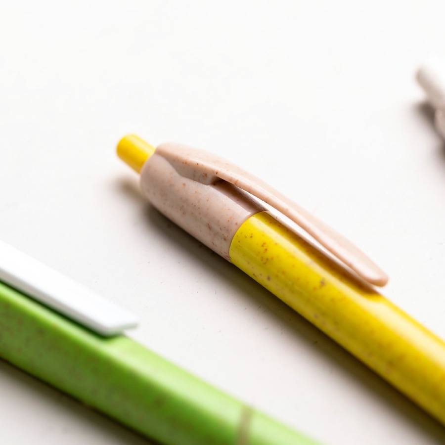Эко-ручка из пластика с пшеничными волокнами Кнопочный механизм Грип в цвет деталей Синие чернила