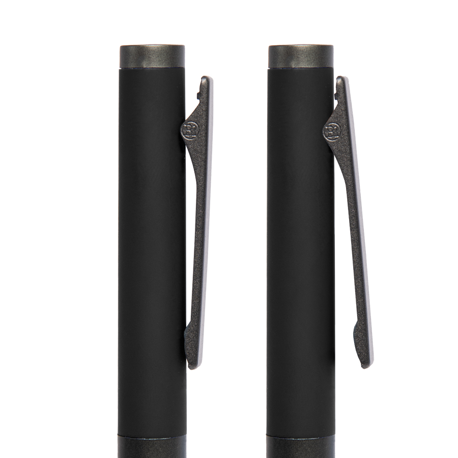 Название данной ручки даже не нужно переводить с английского языка, ведь оно говорит само за себя. Необычная ручка с колпачком точно обратит на себя внимание на рынке рекламной индустрии, а колпачок послужит дополнительным элементом для нанесения. Сама же ручка является превосходным инструментом для письма. Стальной пищущий узел с шариком из карбида вольфрама, шелковая формула немецких чернил от Dokumental, удобный упор для пальцев обеспечат мягкое и комфортное письмо. Если вы готовы и открыты всему экспериментальному и новому, то модель TRENDY –правильный выбор. • Pantone, близкий к Black• Размер 135*10 мм• Корпус и колпачок из алюминия с покрытием soft touch• Металлический клип-прищепка серого цвета • Пластиковые носик и заглушка в цвет клипа• Пулевидный пишущий узел 1.0 мм• Длина линии письма 1000 м • Чернила Dokumental. Цвет чернил синий• Сменный стержень Parker type• Подложка вскрывается зеркалом