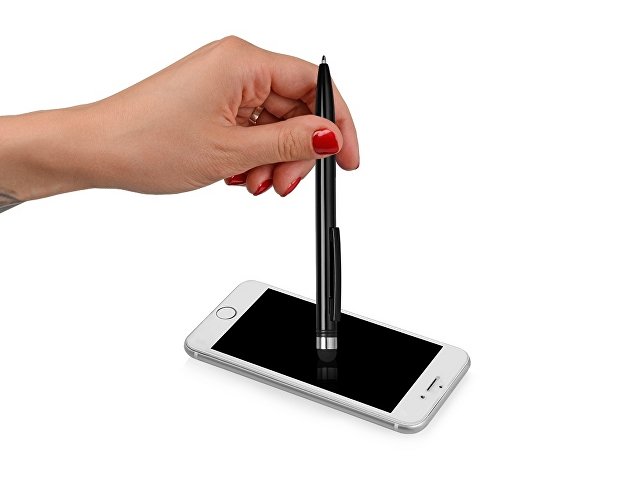 Пластиковая ручка со стилусом. Удачное расположение поворотного механизма предотвращает от случайного появления стержня во время использования стилуса, при этом оставляя большое поле под нанесение на корпусе. Идеальная пара для любого смартфона! Тампопечать (1 цвет (цветные изделия)) на данный товар осуществляется бесплатно. Оплачивается только настройка оборудования в размере 4500 рублей на весь тираж.