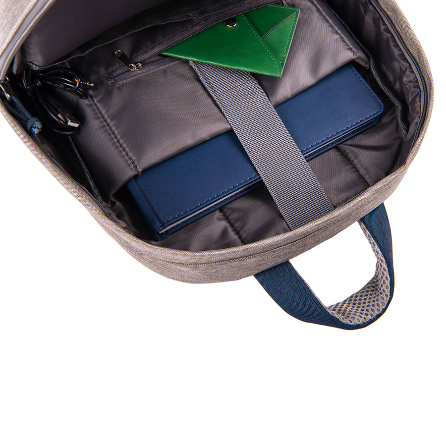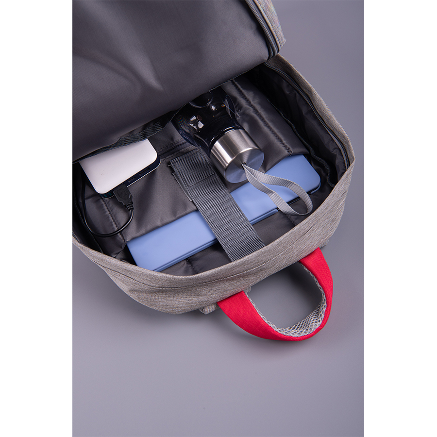 BEAM MINI - мини версия уже ставшего культовым рюкзака BEAM. MINI как стиль жизни! Основной цвет: близкий к Pantone 421 C, нижняя часть: цвет, близкий к Pantone 2189 C · Основная ткань: 100% полиамид, подкладка: 100% полиэстер · Объём: 8 литров · Вмещает ноутбук 15,6" Описание: · Прочный и водоотталкивающий материал · Основной отдел на молнии с двумя бегунками и планкой, защищающей от попадания влаги внутрь · Наружный удобный карман -органайзер на молнии · Внутри укрепленный отдел для ноутбука с защитной тесьмой на липучке · USB разъем для подзарядки вашего устройства (внутри рюкзака в специальном кармане на молнии расположены кабель для соединения с power bank и провод с разъемом мини-джек 3,5 мм для наушников) · Эргономичные лямки и ручка рюкзака · Лямки прошиты дополнительными стропами в быстро изнашиваемых местах, которые можно отрегулировать по длине и зафиксировать пластиковыми крепежами · Упаковка: прозрачный пакет