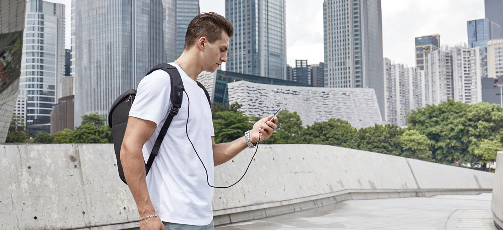 Вместительный городской рюкзак ClickPack X черного цвета, обладатель премии iF Design Award 2020. Размер рюкзака 45х32х15,5 см, объем 18 л, вес 1200 гр. Сделан из свехпрочного устойчивого к порезам и трению водоотталкивающего полиэстера многослойного плетения. Сочетание полиэстера и стекловолокна защищает от порезов ножом или другими острыми предметами. Конструкция достаточно жесткая, не деформируется. Детально продуманная организация отделений позволяет грамотно распределить вес. Самые тяжелые предметы располагаются ближе к спине, например, в отделении размером 34х28х3 см для ноутбука диагональю до 15,6” с дополнительным карманом размером 18х24 см для планшета диагональю до 8” или мелких вещей. Благодаря плотным перегородкам ноутбук надежно фиксируется и не перемещается при ходьбе. Специальная анатомическая конструкция снижает нагрузку на плечи и спину, и вес рюкзака воспринимается на 20-25% легче, чем при использовании стандартных моделей рюкзаков. Вентилируемая спинка с мягкими анатомическими вставками и дополнительной защитой поясничного отдела позвоночника. Конструкция рюкзака позволяет открывать его под углом 30° или распахнуть полностью на 180°. Если необходимо достать какие-то мелочи, достаточно зафиксировать липучки для вертикального открытия на 30°, а для того, чтобы аккуратно уложить в рюкзак много различных предметов, просто положите его и раскройте на 180°. Дополнительно в основном отделении расположены еще 5 карманов различного функционала. 2 кармана размерами 13х22 см и 14х22 см на молниях и 3 открытых кармана под мелочи, в один из которых размером 16х10 см можно поместить powerbank, т к в него приходит USB-кабель, соединенный с портом на внешней стороне рюкзака для легкого подключения к смартфону. Это оригинальная запатентованная система зарядки K EasyCharging 3.0 нового поколения с помощью USB-порта, расположенного в лямке рюкзака, и кабеля, идущего к powerbank, что делает мобильную зарядку более удобной. С внешней стороны рюкзака сбоку есть специальный водозащищенный карман размером 14х11 см. В него можно поместить бутылку с водой или зонт. Рюкзак закрывается на водонепроницаемую молнию YKK, которую можно зафиксировать с помощью кодового замка TSA007 с функцией таможенного досмотра. После этого рюкзак закрывается клапаном, фиксирующимся магнитным замком с системой SNAP. На клапане расположен easy access карман с магнитной застежкой. На правой лямке рюкзака находится USB-порт, на левой - easy access карман для карточек. На обеих лямках с удобной новой системой регулировки и фиксации пряжек есть петельки, за которые можно прицепить очки или проводные наушники. На спинке рюкзака расположен внешний потайной карман на магнитной застежке размером 14х28 см. Над ним есть дополнительная лямка, за которую можно закрепить рюкзак на выдвижной ручке чемодана. В дополнение к вышеперечисленным средствам защиты рюкзак ClickPack X оснащен стальным тросом, которым можно обхватить неподвижный предмет и затем зафиксировать бегунком молнии в кодовом замке. Сверху расположена специальная ручка, за которую при необходимости удобно нести рюкзак в руках. На углах клапана рюкзака размещены треугольные светоотражающие элементы черного цвета, отлично вписывающиеся в основной дизайн. В темное время суток они равномерно отсвечивают практически на 360° и делают вас заметными на расстоянии до 100 метро