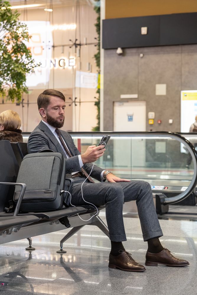Городской рюкзак для ноутбука Santiago Slim изготовлен из влагозащищенного полиэстера и микрофибры. Карман для бутылок, удобная спинка с мягкими вставками, лямка для крепления к чемодану, эргономичные плечевые ремни и внешний USB-порт делают этот рюкзак незаменимым аксессуаром для работы, поездок и повседневных дел.