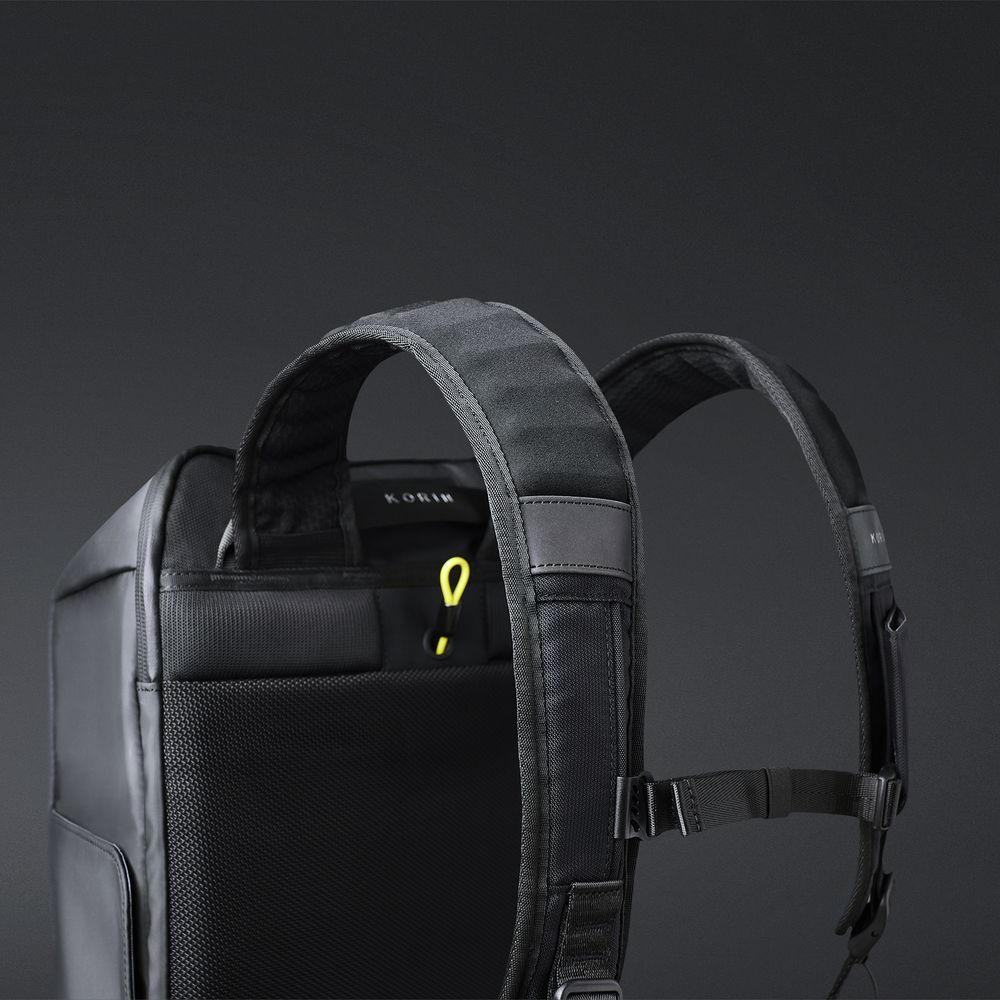 - Дополнительно на лямках расположен карман с RFID-защитой для кредитной карточки и петельки, за которые можно прицепить очки или проводные наушники