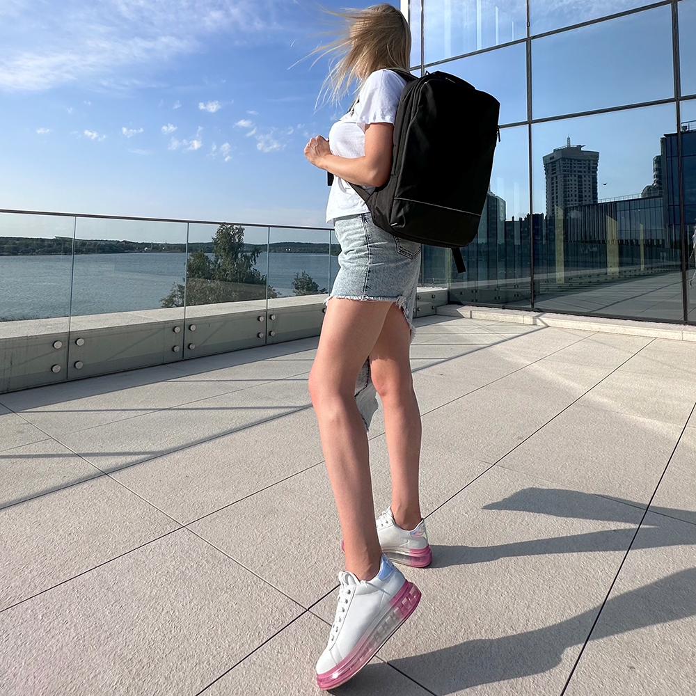 Уплотнение стенок, дна и боковых частей рюкзака придаёт ему форму, надёжно защищает содержимое от ударов, а двойное уплотнение задней стенки распределяет вес рюкзака и снижает нагрузку на позвоночник.